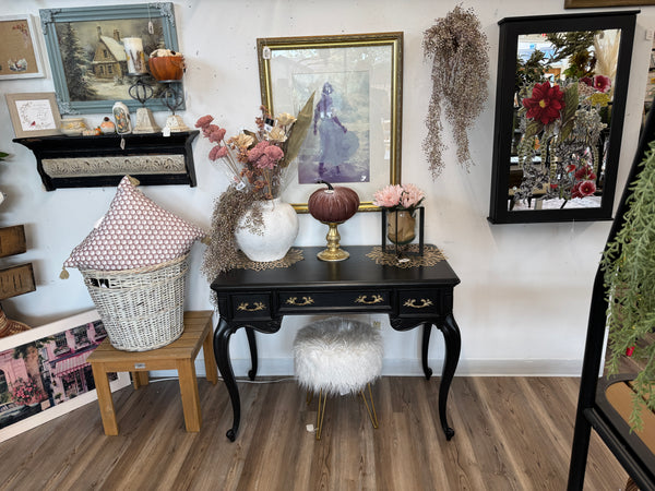 Cecile is painted in DIY Little Black Dress and sealed with Sweet Pickens matte topcoat. This vintage gal is ready to bring some bling and style as a vanity or a desk