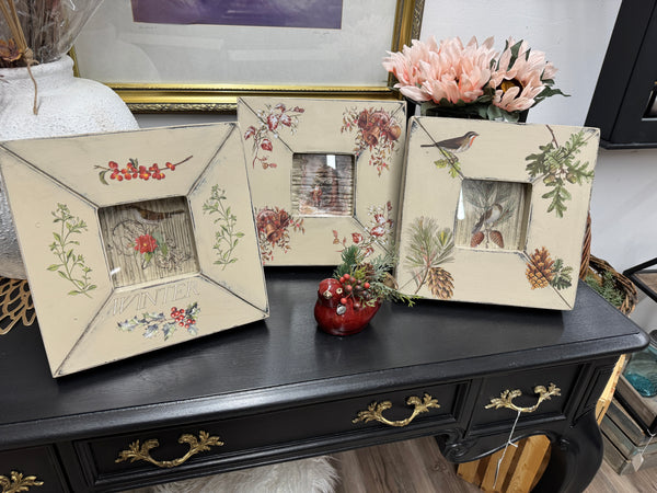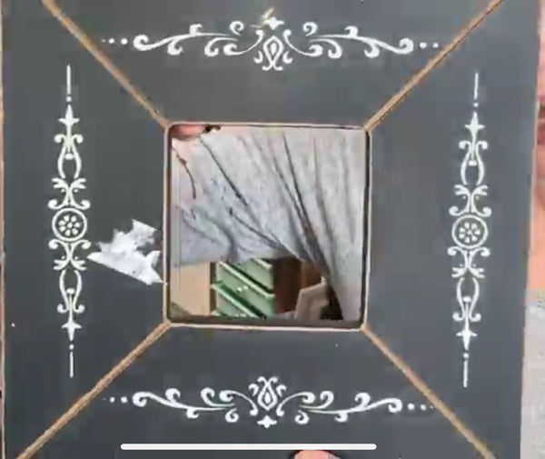 8” square upcycled by Jen in the Rustic Rehabs Insider group. Crockery paint distressing and IOD Christmas Hollow & Partridge Lane transfers on corrugated cardboard for texture.