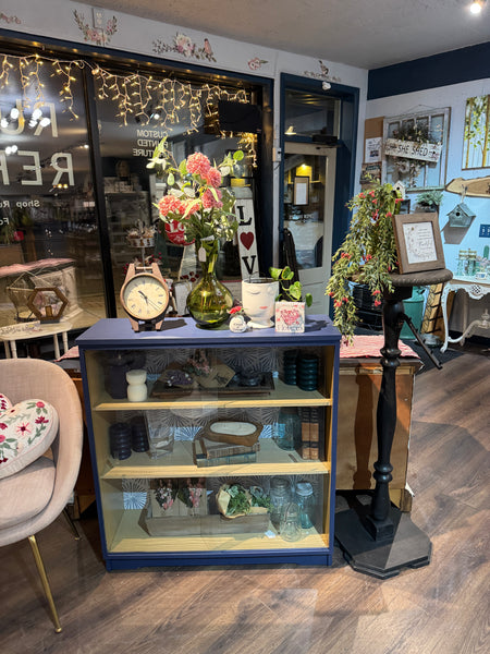 Lottie is a mid-century vintage bookcase reimagined with a soft, storybook spirit. Painted in DIY Paint “Pacific,” her gentle blue feels calm and comforting, like a summer sky seen through open cottage windows.